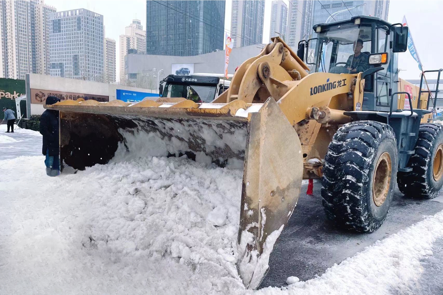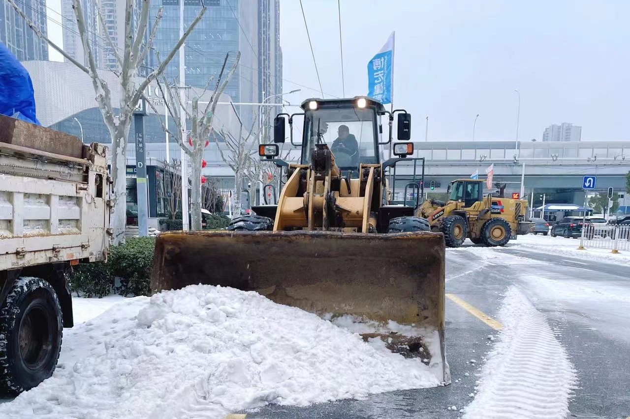24小時不間斷,漢陽市政融雪除冰應急搶險突擊隊通宵奮戰(zhàn),積極投身到保暢保通工作當中,駕駛?cè)谘﹦┤霾架嚒㈢P車在路面循環(huán)作業(yè),在漢陽大道、江城大道、晴川大道、鸚鵡大道、國博大道、墨水湖北路、琴臺大道、楊泗港、龍陽大道、仙女山高架、二環(huán)線高架等重點區(qū)域,通過“人機聯(lián)合作戰(zhàn)”的作業(yè)模式,頂風鏟雪,保障城市交通暢通;雪中送炭,幫助受困車輛脫險。同時,應急人員積極幫助小區(qū)鏟雪,全力保障市民出行安全。
