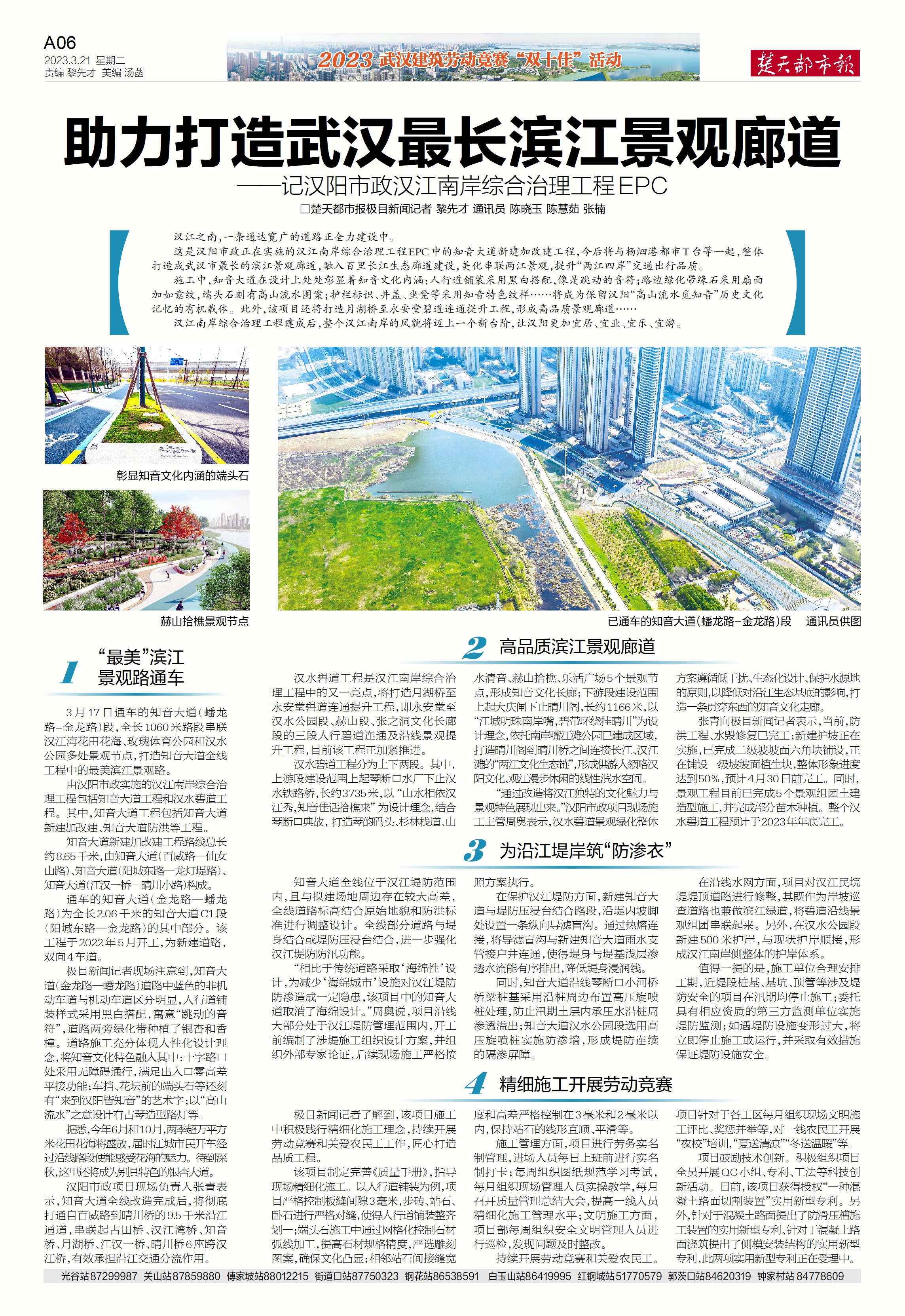 楚天都市報推出《助力打造武漢最長濱江景觀廊道—記漢陽市政漢江南岸綜合治理工程EPC》專版報道。