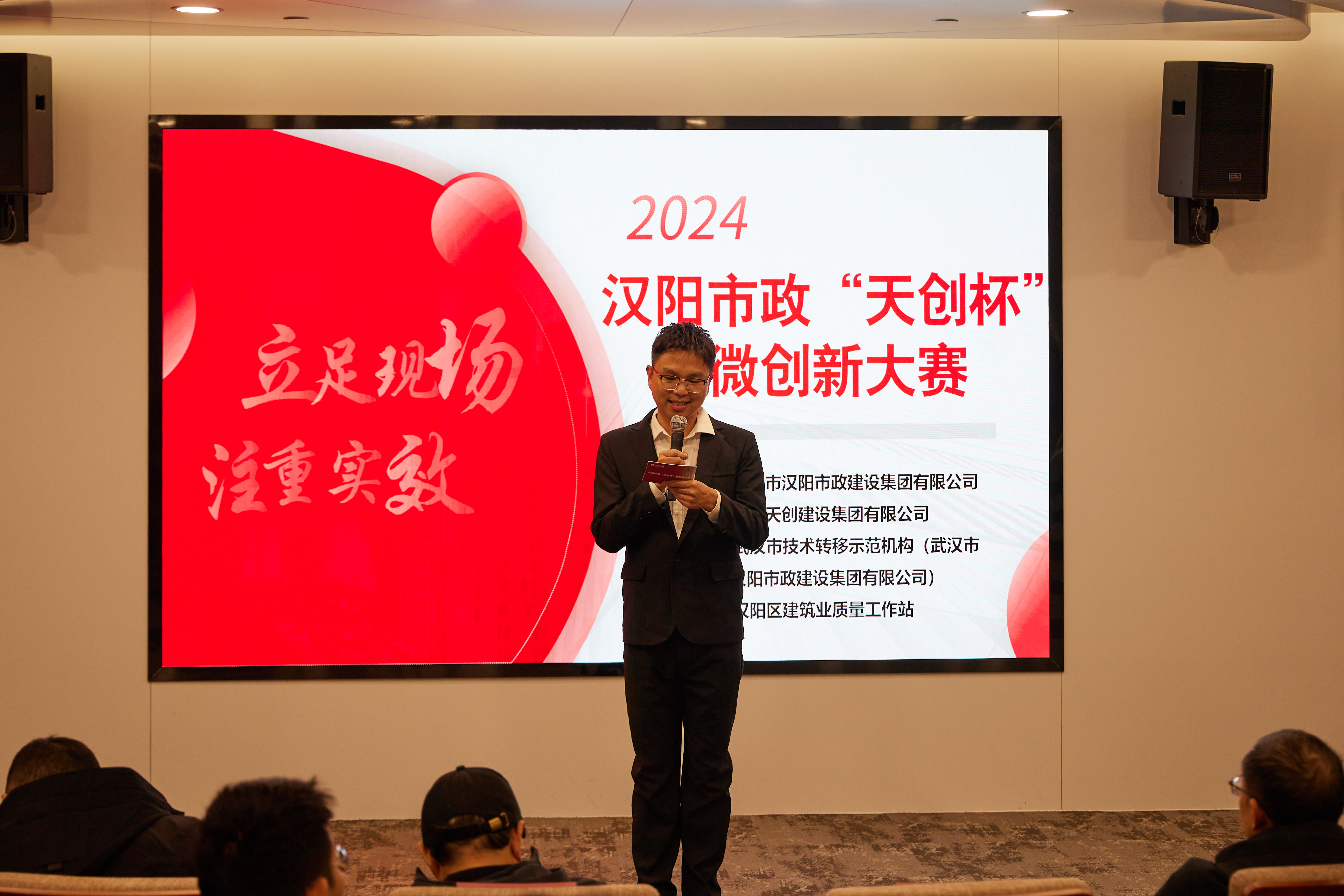 12月11日,以“立足現(xiàn)場(chǎng) 注重實(shí)效”為主題的漢陽(yáng)市政“天創(chuàng)杯”微創(chuàng)新大賽隆重舉行。本場(chǎng)比賽邀請(qǐng)了武漢航空港發(fā)展集團(tuán)有限公司副總工程師鄧?yán)鳌⑷A中科技大學(xué)土木與水利工程學(xué)院副教授張偉、漢陽(yáng)市政集團(tuán)總工程師盧永紅、集團(tuán)相關(guān)業(yè)務(wù)部門(mén)負(fù)責(zé)人以及各分子公司技術(shù)條線分管領(lǐng)導(dǎo)作為評(píng)審專家。