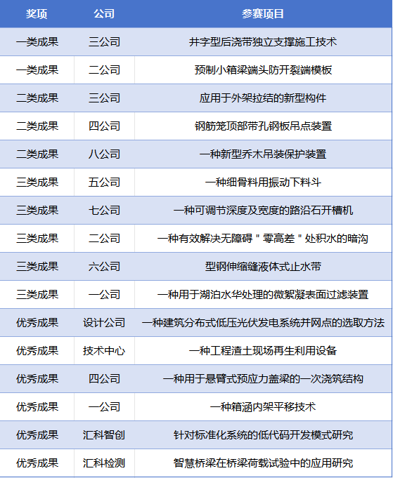 根據(jù)現(xiàn)場(chǎng)評(píng)審專家評(píng)分,“井字型后澆帶獨(dú)立支撐施工技術(shù)”和“預(yù)制小箱梁端頭防開(kāi)裂端模板”兩個(gè)項(xiàng)目分別獲得2024年度漢陽(yáng)市政“天創(chuàng)杯”微創(chuàng)新大賽一類成果。此外,大賽還評(píng)選出二類成果3項(xiàng)、三類成果5項(xiàng)、優(yōu)秀成果6項(xiàng)以及優(yōu)秀組織獎(jiǎng)。
